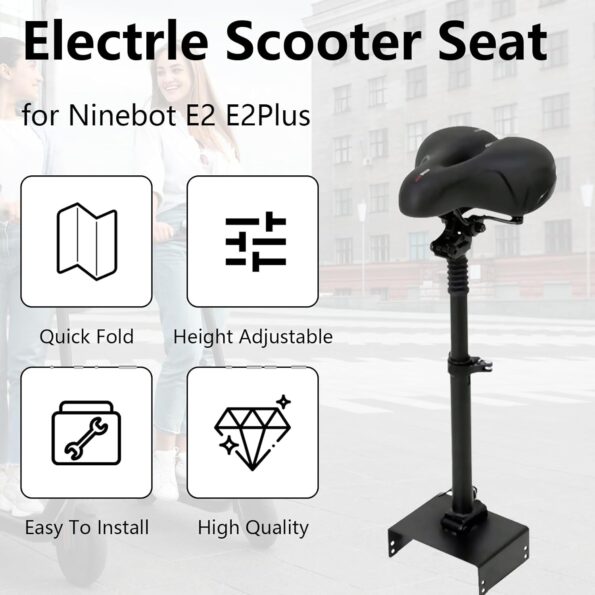 Asiento Patinete Electrico, Sillín Plegable para Patinete Eléctrico Sillín para Scooter Eléctrico Ajustable en Altura Doble Absorción de Impactos Accesorios Patinete Electrico Compatible E2/E2Plus